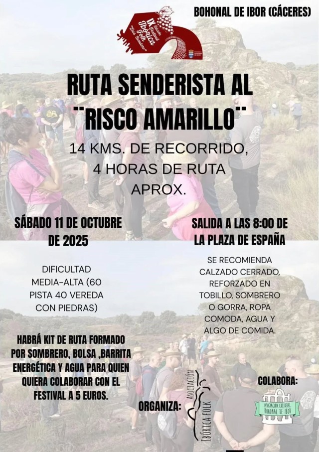 Ruta senderista al Risco Amarillo. Sábado, 11 de octubre de 2025 a las 8:00 horas. Salida desde la plaza de España de Bohonal de Ibor (Cáceres).